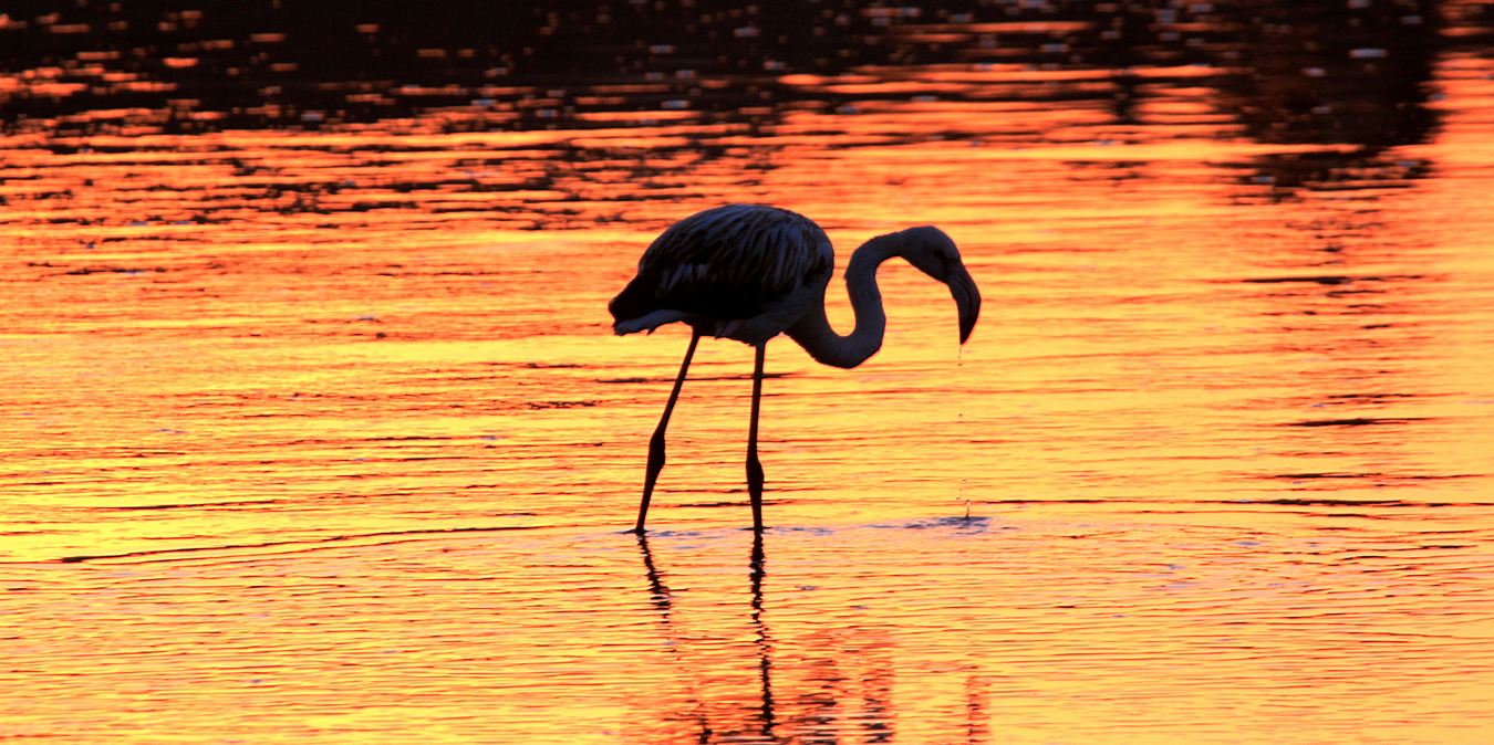 火烈鸟,是鹳形目红鹳科红鹳属的一种。因长期啄食藻类浮游物及小鱼小虾,摄取大量“虾青素”(ASTA),白色羽毛会逐渐变红。健壮的雄鸟全身火红,因而得名火烈鸟。该鸟主要分布于地中海沿岸,东达印度西北部,南抵非洲,亦见于西印度群岛,这种外形美丽的鸟类能够飞行,但是事先得狂奔一阵以获得起飞时所需动力。
