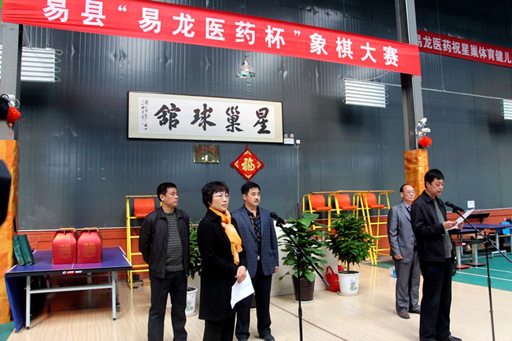4月10日至12日,历时三天的易县“易龙医药杯”象棋大赛圆满结束。本次比赛由易县文体办主办、星巢体育馆承办,保定易龙医药有限公司赞助,此次象棋比赛共有来自乡镇、县直单位和学校的八支代表队及象棋爱好者共计60余人参加。经过激烈角逐,最终星巢体育代表队、卫生局代表队、民政局代表队、电力局代表队分获团体前4名,马明军、张国烨、朱德宝分获冠、亚、季军。县委、县政府、县人大的有关领导出席了比赛的开幕式及闭幕仪式,并为获奖者颁发了证书和奖品。比赛的成功举办,增进了棋友间的技艺交流,活跃了我县群众的体育文化生活,促进了我县棋类水平,受到社会各界的一致好评。