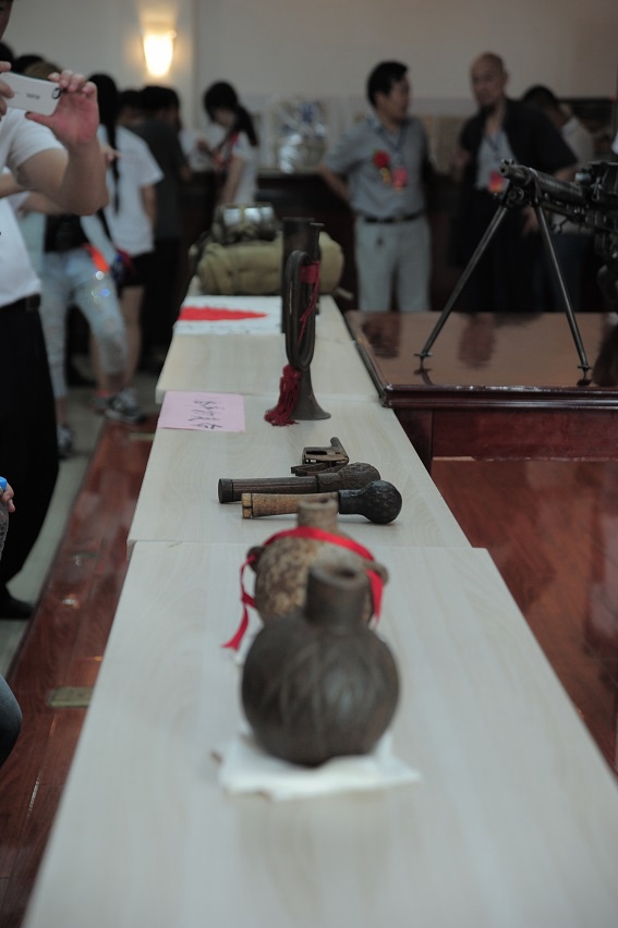 为纪念中国人民抗日战争暨世界反法西斯战争胜利70周年,8月14日上午易县首届“红色收藏展”在“河北省级爱国主义教育基地”“五壮士”跳崖地——狼牙山隆重举办。本次活动由易县县委宣传部,易县狼牙山管委会,易县文体局联合主办,由易县收藏家协会承办。