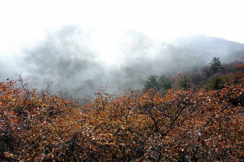 秋天好、一切美好源于大自然,11月9日天气刚下过雨雪、阴、驾车从县城出发京赞线南行,途经狼牙山--七峪乡--张公铺村,虽然看红叶有点晚了但景色以然很漂亮,