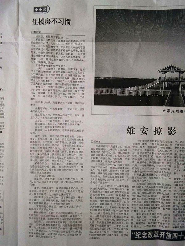 韩永山,易县武庄村人,今年82岁,易县作家协会会员。韩老师于1957年从易县师范初中班毕业。少年时期起,韩老师就爱好文学写作,创作出大量的小说、散文和诗歌作品。其作品多取材于农村,以反映即时农民生产生活为主。作品风格朴实,追求形式与内容的高度统一。由于作风低调,韩老师一直把文学创作当成个人爱好,从不向外投稿。本篇稿件由《保定日报》社从本网选中发表。在此表示祝贺。
