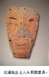 2、出土了十几件陶刻面具,形制有大小之分,大者与真人面部基本相同,小的10cm左右,面具图案有人面和兽面,兽面有猴、猪、猫科动物面,采用的雕刻技法有阳刻、阴刻、镂空三种技法相结合。陶刻面具具有写实性、象征性和装饰性融为一体的艺术风格,成为史前原始艺术的精品。每种面具四周都有小穿孔,应为系戴时穿绳之用,证明是原始人在参加祭祀活动时佩带的。