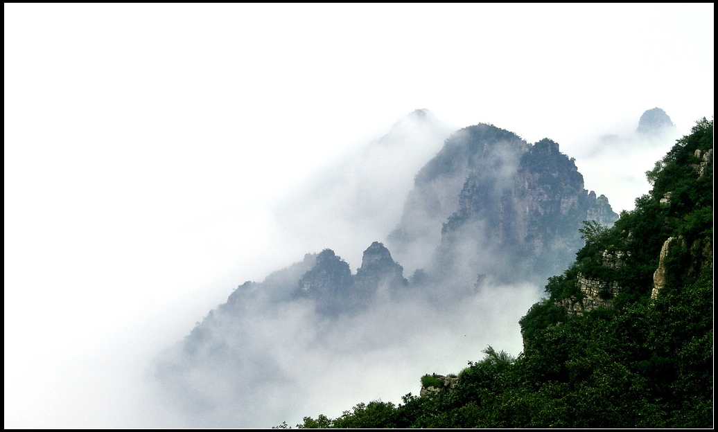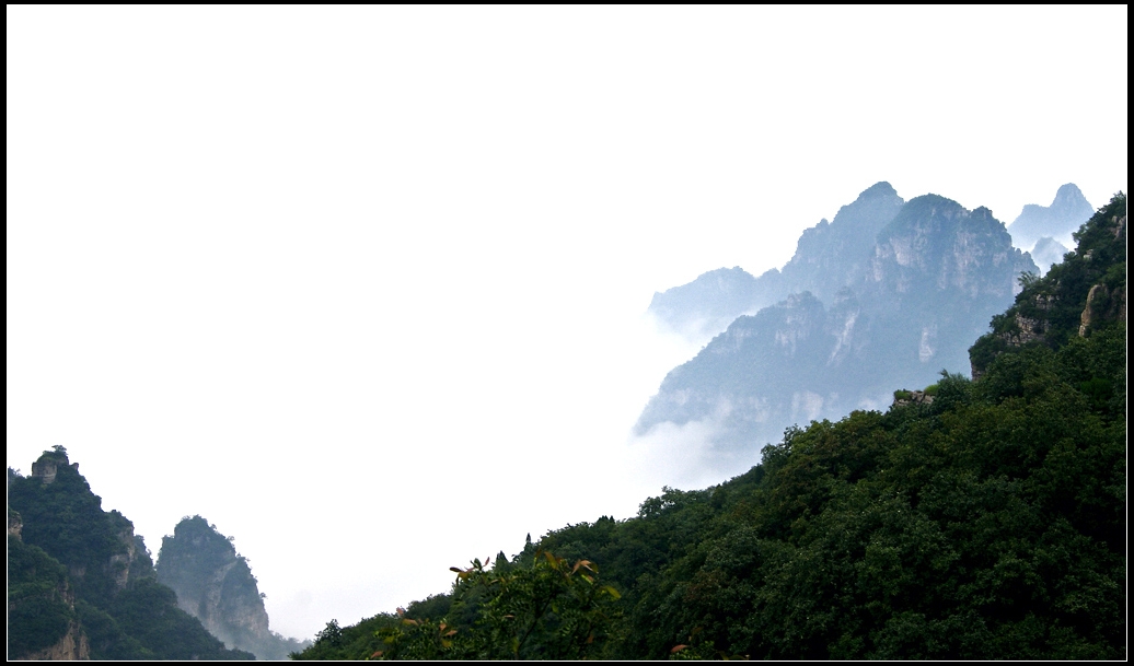 8月18日陪唐山朋友一行11人游狼牙山,正好赶上潇潇秋雨和绵绵岚雾,于是,便有了醉龙自学会按快门以来拍得最模糊的一组照片。却原来,把照片拍清楚不易,拍朦胧更难——因为大雾弥漫之时,你根本就无法对焦。上片——