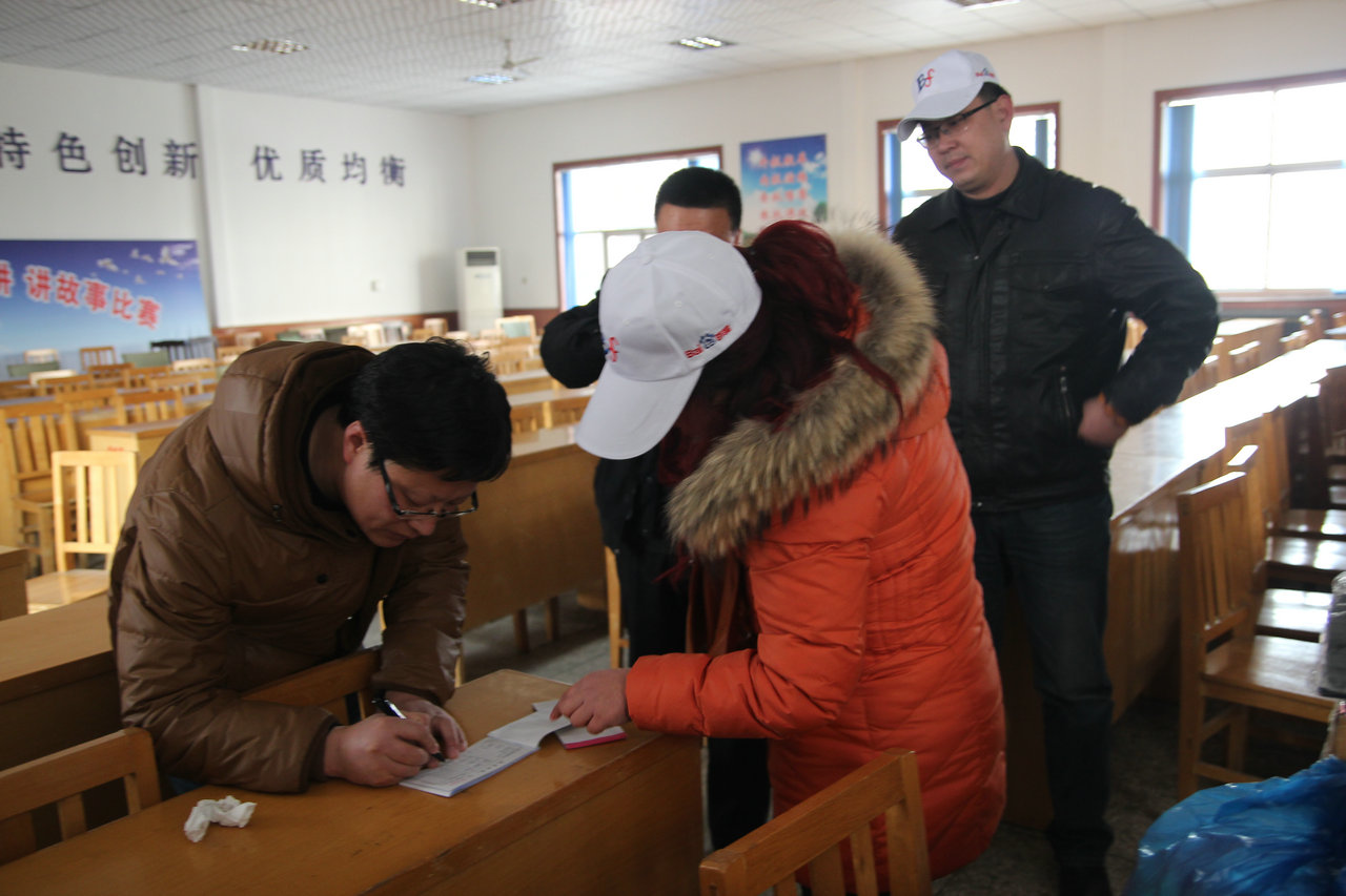 BF记者们活动热情持续燃烧着,内心却为山区受冻的孩子们煎熬着。岂料,12月20日下午,华北地区又迎来一次大范围的降雪过程。路况极差。虽说安全第一,可是一想到孩子们一双双渴望的眼睛,不畏艰难的保定站BF成员们满腔热血,豪情壮志,于21日早上义无反顾的从四面八方向活动地点聚集,前进在了薄冰覆盖的公路上,坚持要把物资悉数运往易县山区学校。由于狼牙山位处深山老区,山路蜿蜒崎岖且路面结冰,狼牙山小学崔校长为了BF成员们的安全考虑,强烈建议将活动地点改在易县县城的教育局,物资转交的活动程序也相应简化。易县教育局局长及其重视这次活动,亲自出席并参与了这次的物资转交仪式,在几位教育工作人员和BF记者们的共同见证下,崔校长与BF保定站顺利完成了温暖行活动物资的转交。