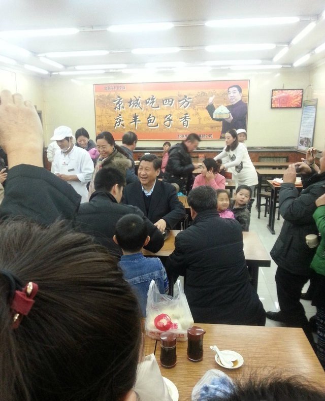 这一行为是否刻意安排已并不重要。首先,作为国家领导人任何行动都非小事,就算习近平真想视察回程去街面上吃包子,在安全制度之下,也不得不有所安排。其次,亲民的进步与时代的进步是实实在在看得到的。比如我们在视频中看到的,习近平在吃包子的时候,后面不停的有周围的年轻食客欢快的跑到他后面拍照留念,而总书记却故作不知,大家都很欢乐(背景还有女人大叫:服务员,餐巾纸,多拿点!)这说明国家主席是置身在人民群众中的,与民同乐,哪怕就是仅此一次,也是三十年多来的先例。