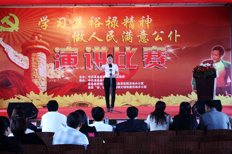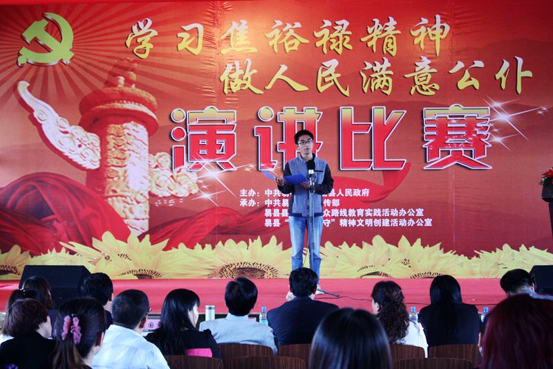 2014年5月9日,由县委、县政府发起,县委宣传部组织的全县“学习焦裕禄精神,做人民满意公仆”演讲大赛(初赛)在电力局四楼会议室拉开帷幕,有28个乡镇处、20个县直部门参加。选手们各展才艺,大赛异彩纷呈。