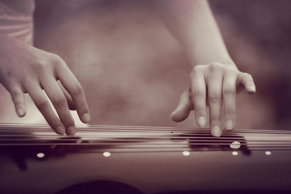 拨弄着琴弦