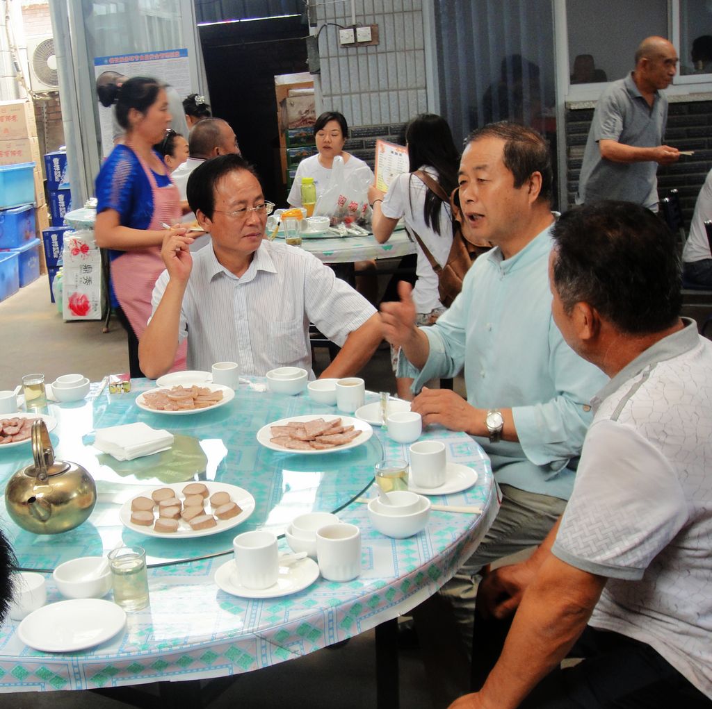 中间这位老者是满族宫廷菜肴的六世传人。见我来,说:给你烧盘葡萄吧。