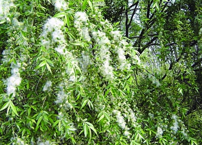 嫩柳娇杨绽素葩,纷飞跳伞绕农家。