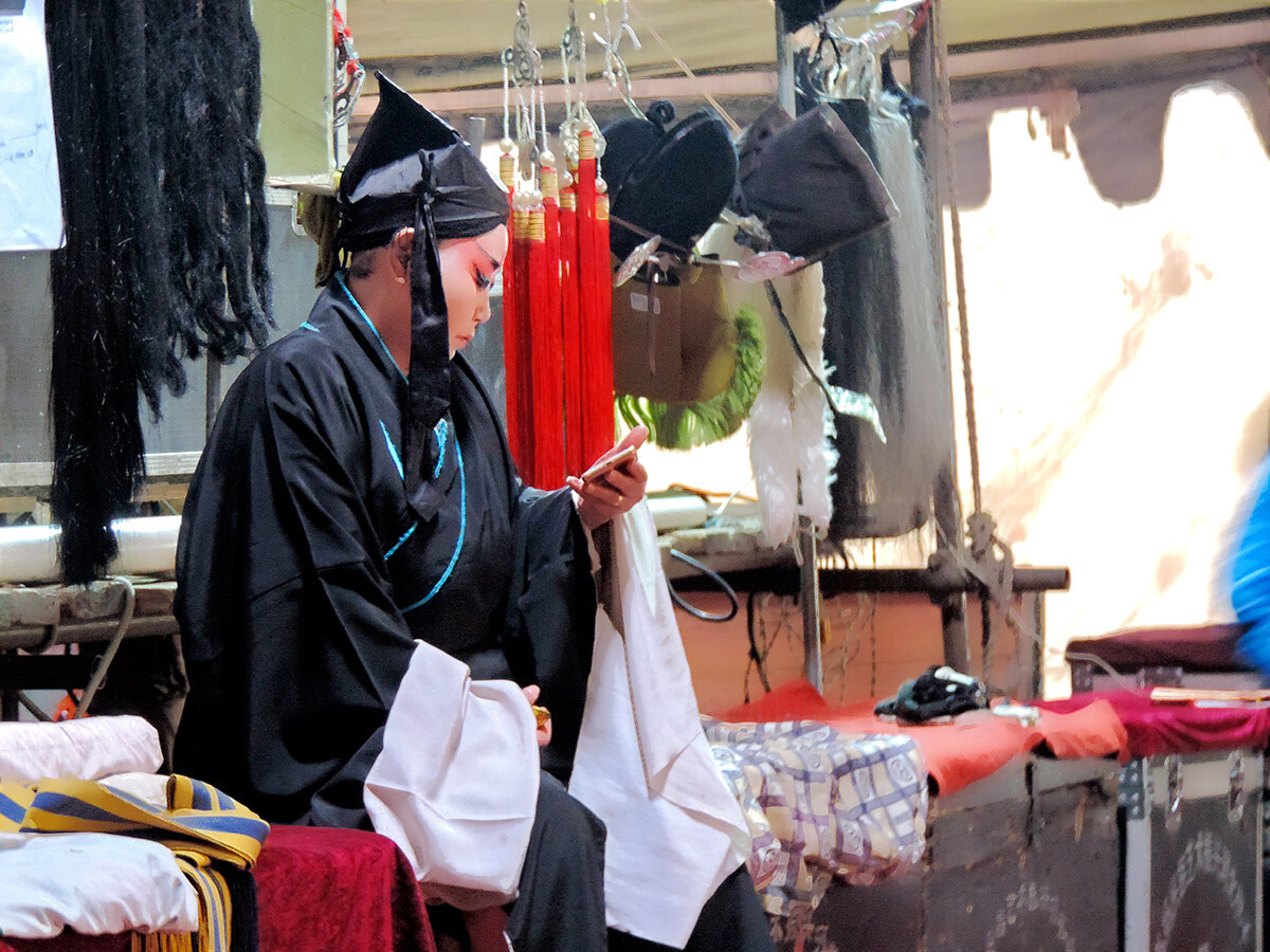 ”尽管候场时也在玩微信,但靠“跑大蓬”勉力维持的传统剧团,其