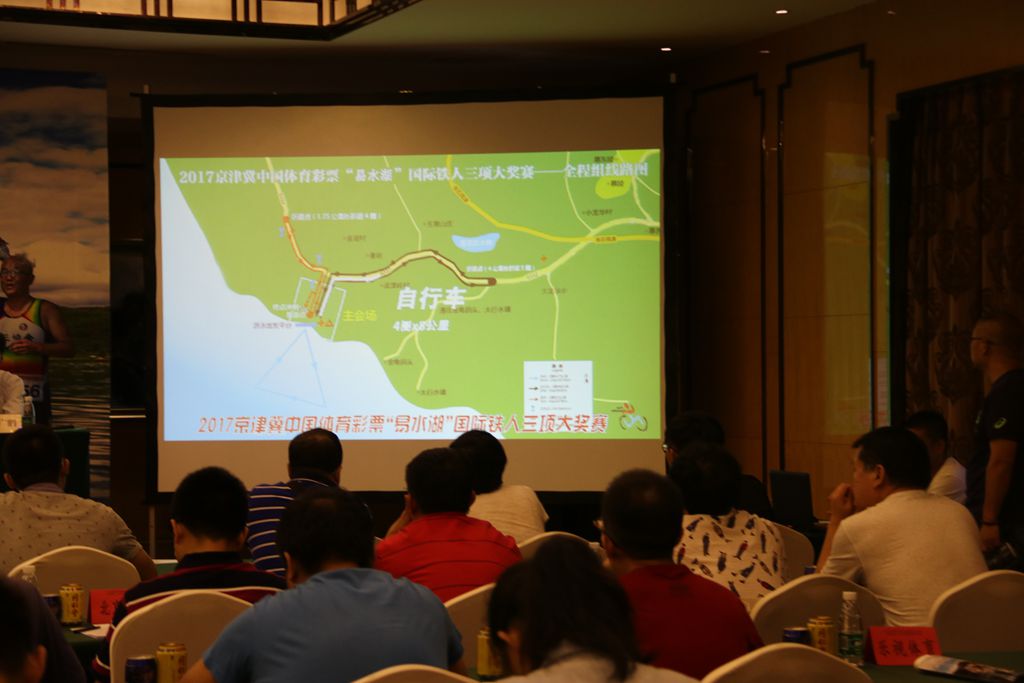 6月20日上午,2017京津冀中国体育彩票“易水湖”国际铁人三项大奖赛新闻发布会在北京召开。在大家的共同关注和见证下,2017 “易水湖”国际铁人三项大奖赛正式启动。河北省体育局副巡视员陈飞、保定市政府副市长蒋栋、保定市体育局局长郭建等相关领导出席了本次发布会并讲话,易县政府副县长赵广鹏在发布会上致辞。人民日报、中国体育报、中央电视台、凤凰卫视等国家、省、市、县40余家新闻媒体记者参加了发布会并做了相关报道。