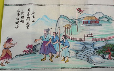 后土寨,彩云飞,黄帝宫房,无梁殿,青石瓦,浑如宝帐,更似天堂,玉石阶。九转三过,有婴儿姹女,乐奏东厢,百尺杆旗动,遍山峪,见凤舞龙翔。
