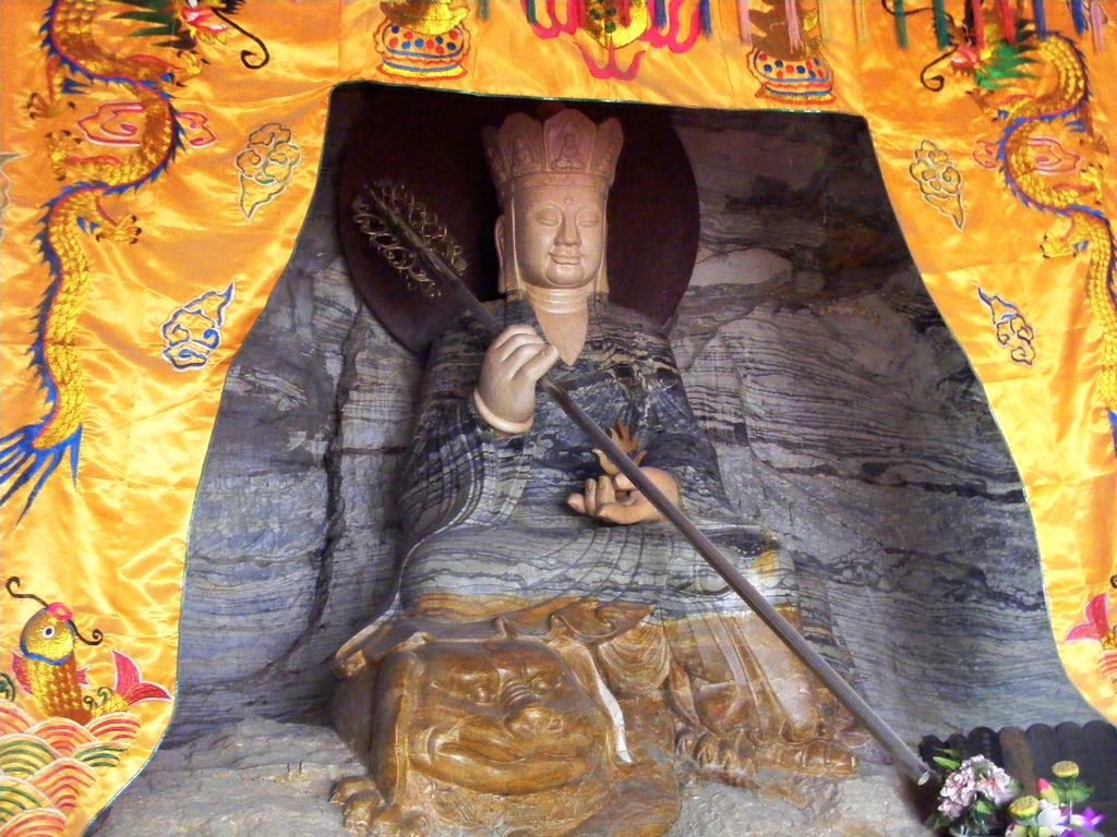 尹老师很有艺术家的浪漫情怀,是一名出色的文化行旅。不光是书画画的精美,摄影的艺术角度也很独到。楷模。这组神像是太阳宫的天然雕刻,融合了民间匠人的智慧和辛劳,是艺术的结晶。地藏王、石制香缸、大肚弥勒福、济公、观音、古代遗留下的伤残貔貅、玉皇大帝、文武财神等栩栩如生的形象,再现了卧虎山道家圣地的辉煌。只是还缺斗姆神像,还有太阳宫的全貌。