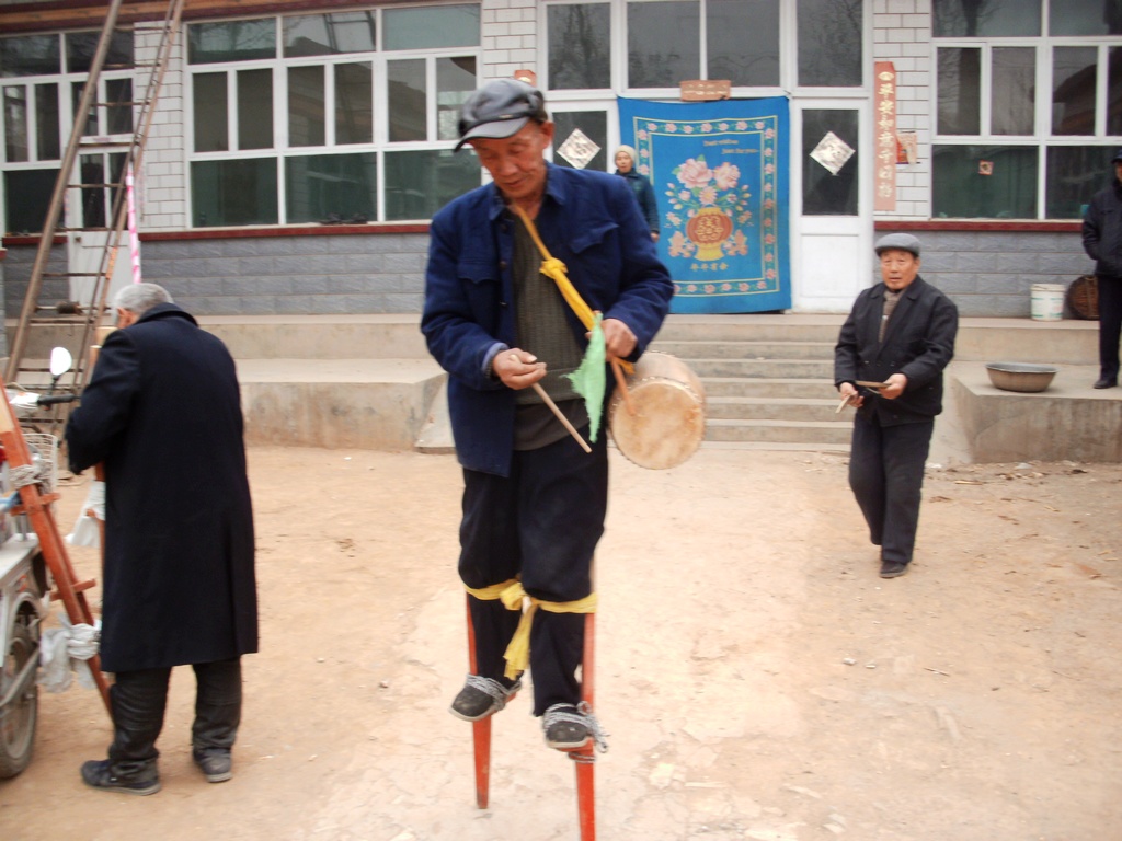 龙凤彩旗飘扬,锣鼓声声震天。2012年3月1日,记者在东霍山村武振河家中见到了该村高跷花会的组织者和传承艺人们,他们正在院中兴致勃勃地演练高跷。技艺的高超、精彩的表演,诠释艺术的特点,振兴传统文化的精神境界,再次使记者领略了他们对艺术的执著追求……