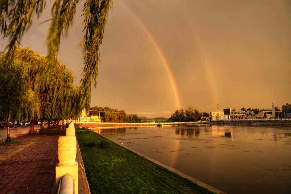 听人说当时南环易水河处出现了双道彩虹,有人拍到了
