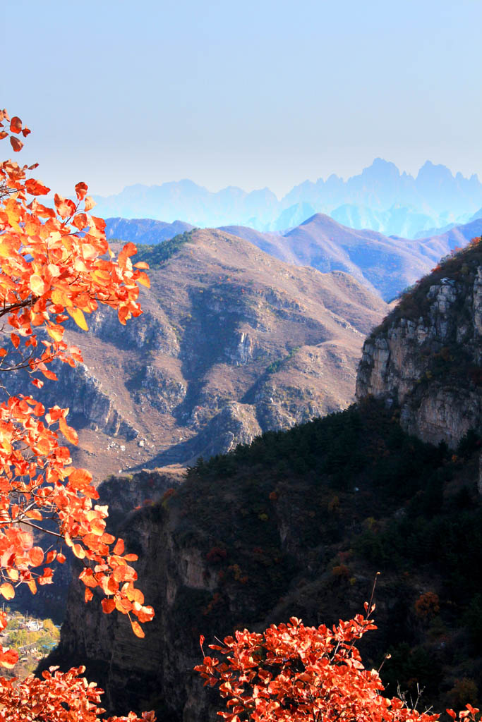 对于摄影我是外行,但也知道同样的地方一人拍出来一个样。当人们一头扎进红叶海洋的时候,我却喜欢黄柏坨的丹崖含翠。