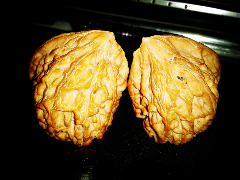从一个青皮里剥出来的两个核桃“半壁江山”,嘎嘎