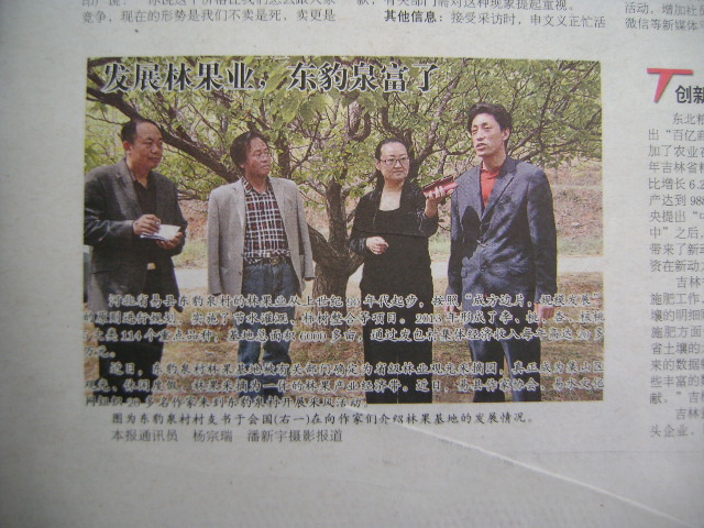 今日,东豹泉村林果基地被有关部门确定为省级林业观光采摘园,真正成为集山区观光、休闲度假、林果采摘为一体的林果产业经济带。近日,易县作家协会、易水文化网组织20多名作家来到东豹泉村开展采风活动。