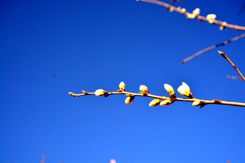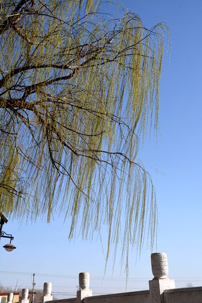用一树泛绿的垂柳开头报春,然后奉上鲜艳的花朵。老赵好构思。
