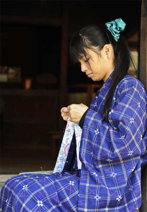 琉球村是介绍琉球生活、风俗、服装等历史文化的旅游村。其中有一个农舍,里面有一老一小两个女人,年轻女孩是个绣女。