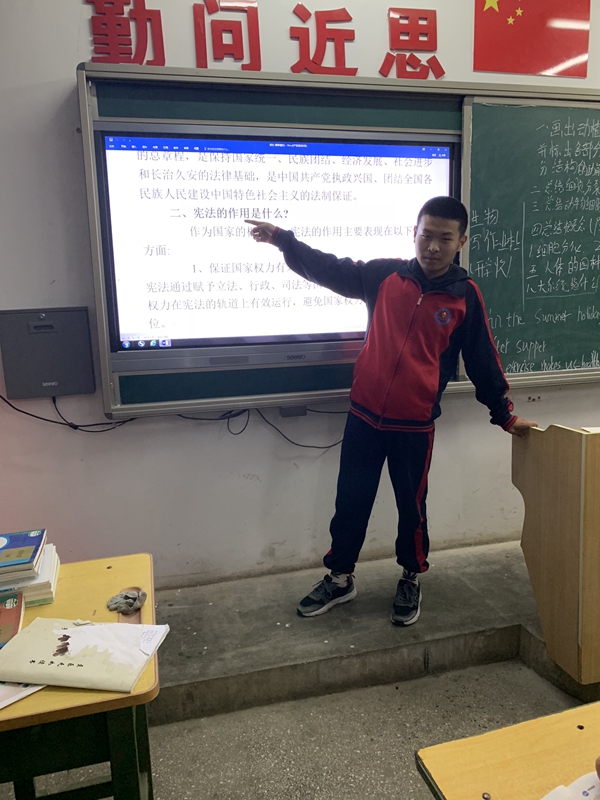 易州九年一贯制学校举办了“师生同升国旗,同诵宪法”、宪法学习主题班会、学习宪法主题板报系列活动。