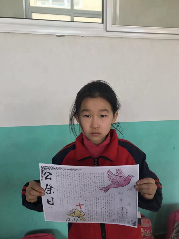 2018年12月13日,是中国第五个南京大屠杀死难者国家公祭日,为了进一步让师生牢记日本帝国主义侵略战争给中国人民造成的深重灾难,增强师生的爱国主义精神,进一步践行社会主义核心价值观,易县各中小学校开展了系列爱国主义活动。