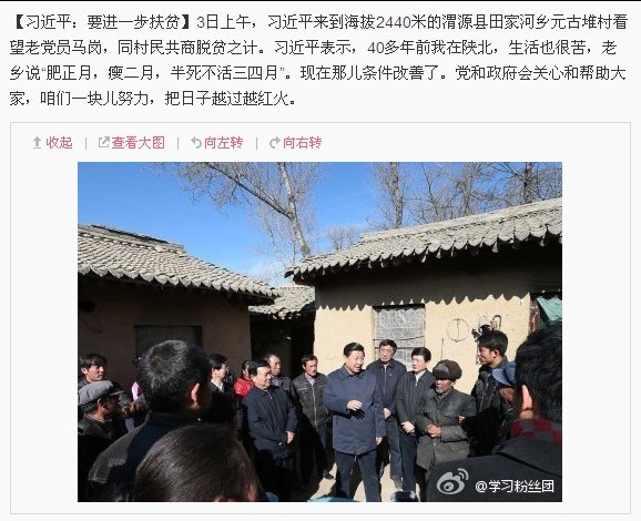 近日一个非实名认证的“学习粉丝团”的微博在网上火了起来,原因在于他不断发出习主席近距离照和相关动态,其更新速度新华社尤不可及,甚至独家资料。且博主自称并非官方,纯属草根。他称呼习近平为习大大、彭丽媛为妈妈。 据悉,习主席正和他的团队研究开微博,以利于贴近民生、民意。众网友表示期待习主席的微博,估计应该是最牛的博主了。